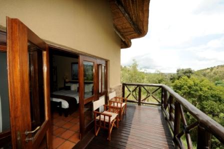 The lodgings have twelve suites, of which two are located in the main building and eight pairs nestled against a slope overlooking the valley. Six of these chalet suites also have outdoor showers in addition to the en-suite bathrooms. High up, on the top of the hill the newly renovated self-catering camp, Eagles Camp, is located. Eagles can sleep up to eight people and is only rented out as a unit on either a self-catering or accommodation only basis. The self-catering camp consists of two en-suite "split level" cottages, the communal kitchen and lapa, complete the circle.
